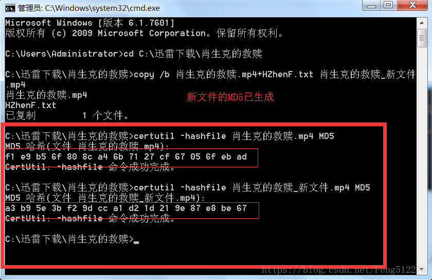 1.格式: copy /b 原视频+txt文件名 新的视频名字2.命令:copy /b 肖生克的救赎.mp4+HZhenF.txt 肖生克的救赎_新文件.mp4